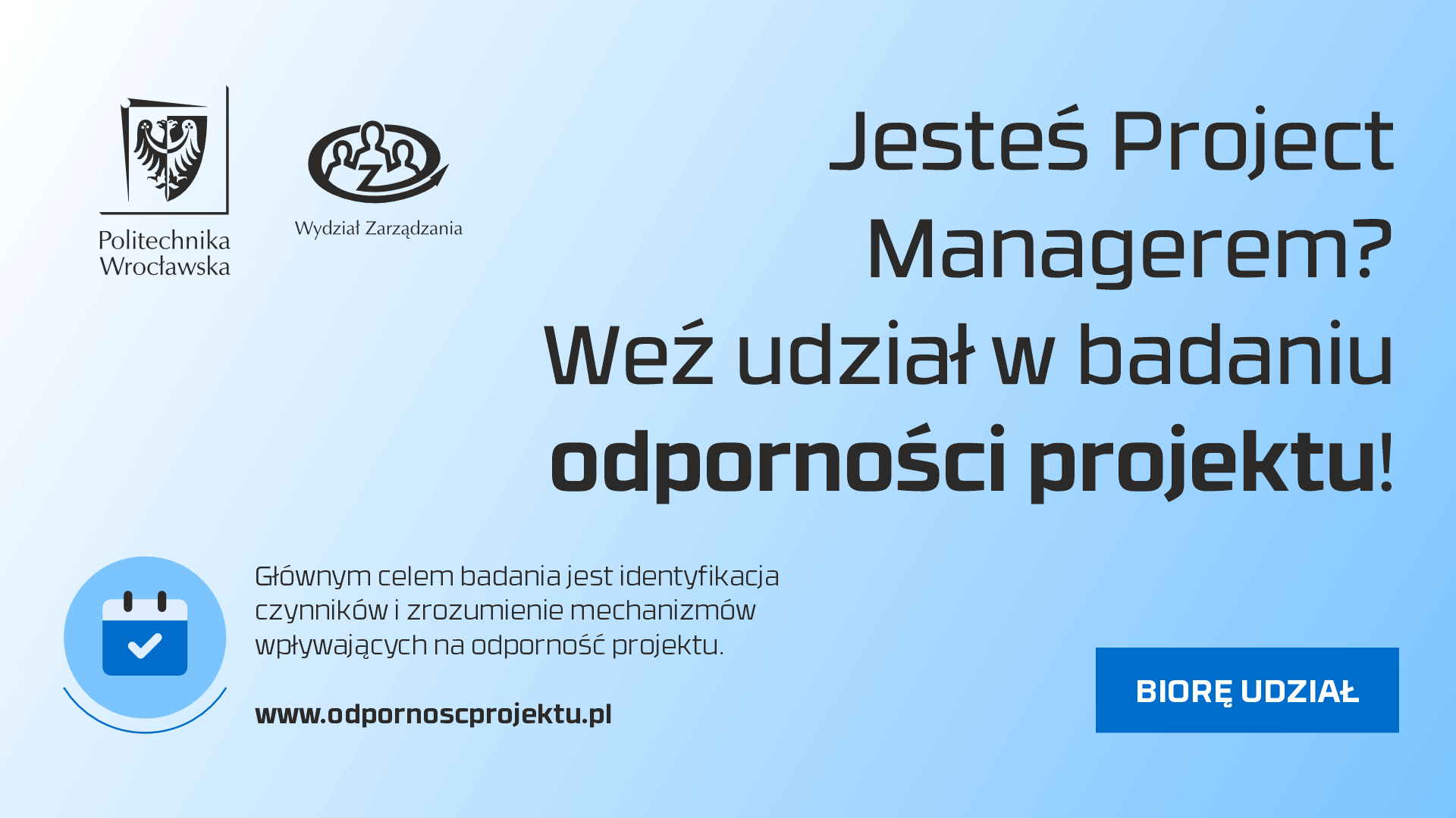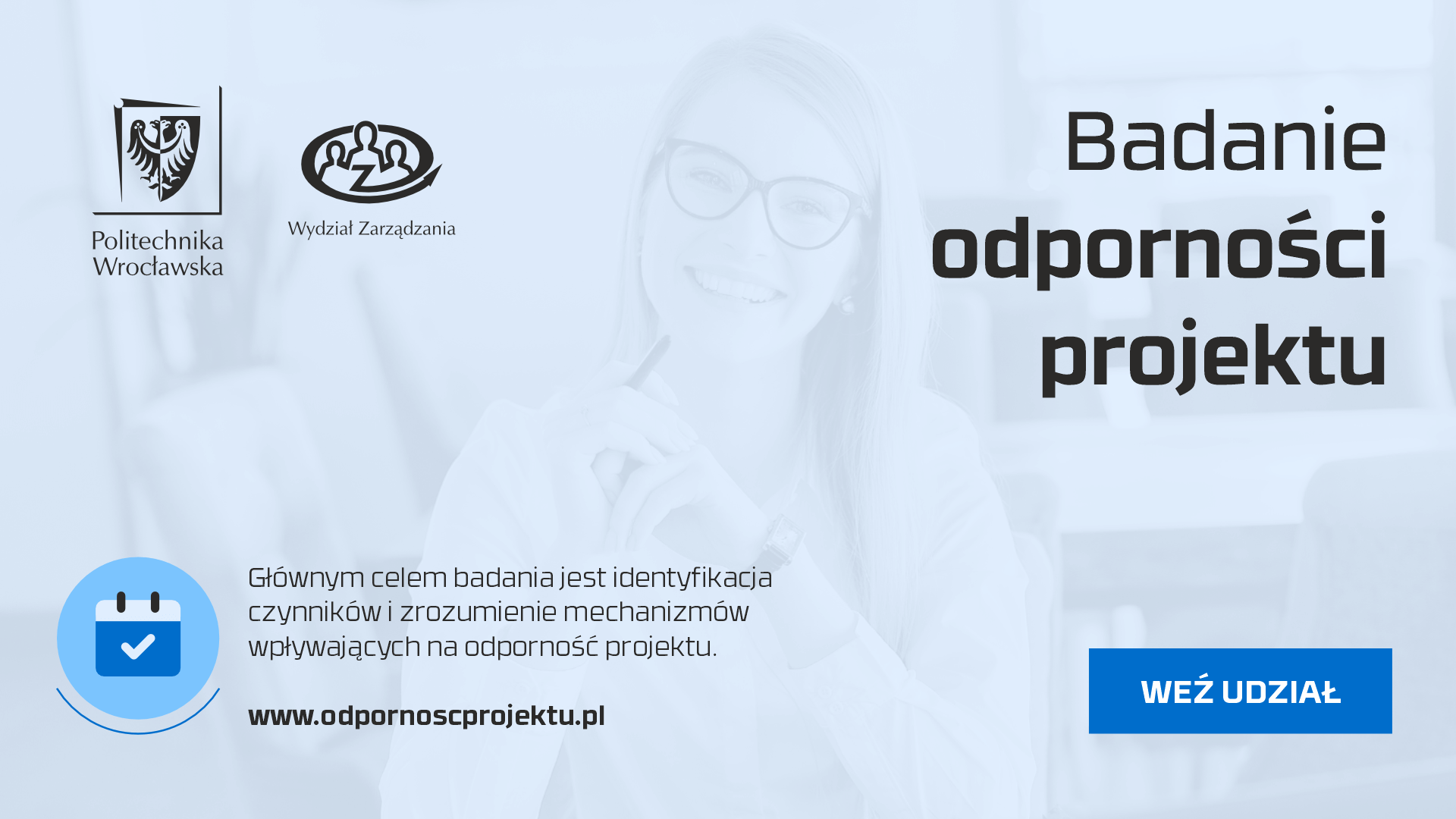 Głównym celem badania prowadzonego na Wydziale Zarządzania Politechniki Wrocławskiej jest rozpoznanie czynników i zrozumienie mechanizmów wpływających na odporność projektu.